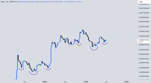 Jameson’s outlook reflects a broader bullish sentiment surrounding Pepe. It’s trading at a 60% discount from its December 2024 peak, but the recent uptick indicates that a recovery may be on the cards.