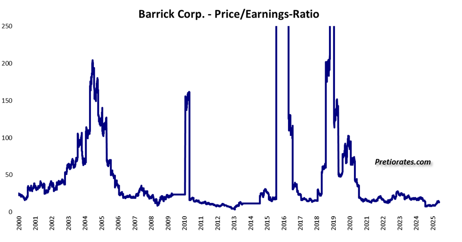 But this is precisely where the fallacy lies. Mining stocks work differently from traditional industrial stocks. They produce goods whose prices change daily – and with them margins, cash flows, and profits. This makes simple valuation metrics such as the price-earnings ratio unreliable. Value adjustments and price fluctuations distort profits and cause the P/E ratio to jump. A low ratio is no guarantee of a favorable valuation – it often simply signals high production costs, impending margin losses, or simply that the deposits have been exhausted.