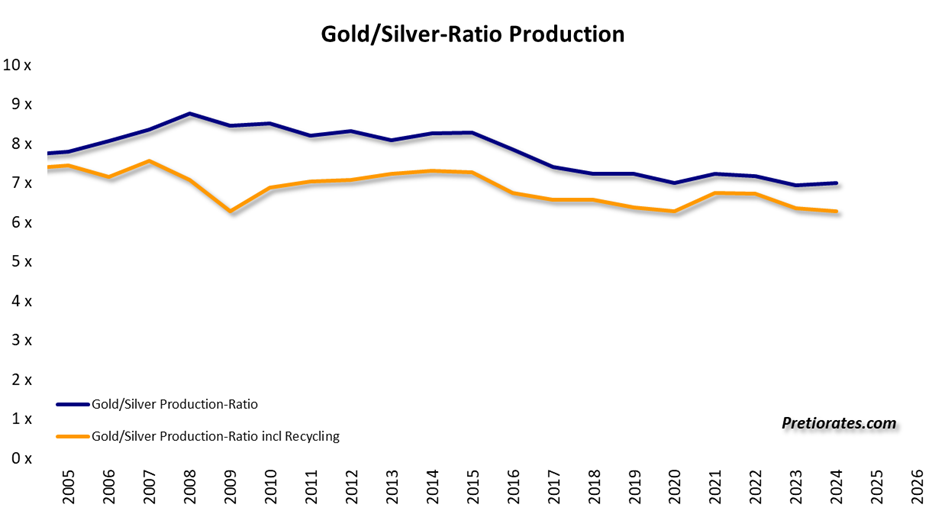 Even if the report proves to be premature, a closer ratio would be entirely plausible from a geological perspective. Silver is only about 15 to 20 times more abundant than Gold and is mined only about seven times more frequently – the current market ratio of more than 80 to 1 seems unsustainable.