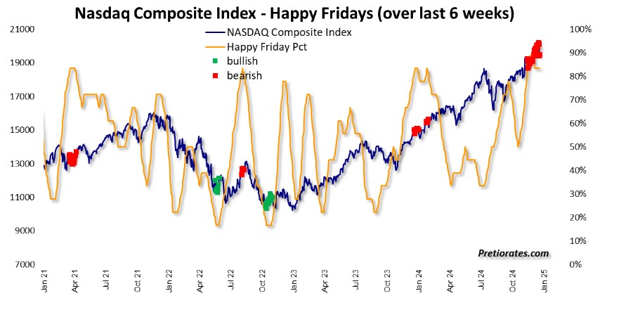 Now the question is whether Jay Powell has just dampened the party or crashed it. We have many sentiment indicators and are happy to publish selected ones via Pretiorates. Perhaps the best statement at the moment is made by the ‘Friday indicator’. This shows when sentiment is particularly good on a Friday. This is how the investor goes into the weekend, looking forward (with bullish sentiment) to the coming week.