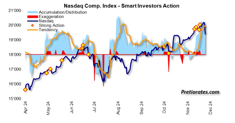 The party has been particularly loud again over the past few days, especially among Nasdaq stocks: strong accumulation, but a large number of ‘strong actions’ warned that a countermovement is due…