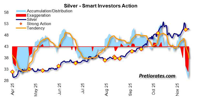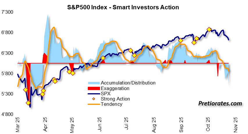 The Smart Investor Action – visible as a light blue area – indicates whether smart investors are accumulating or distributing in the background. Since mid-October, we can clearly see that smart investors are quietly retreating. There is no sign of exaggeration, as there is no red exaggeration area.