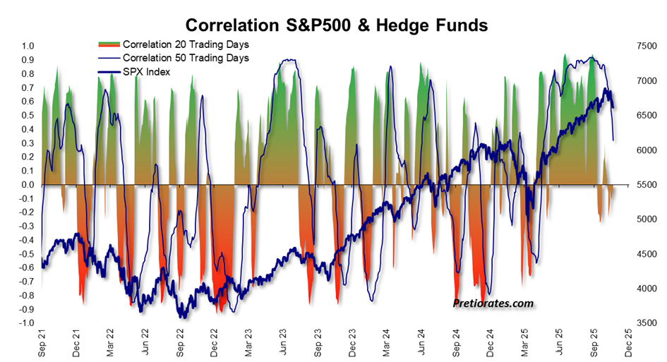The big hedge funds have already done this. Until October, they maintained a rarely sustained overweight position relative to the market. Recently, however, this position has been reduced to market level – a clear sign of growing caution.