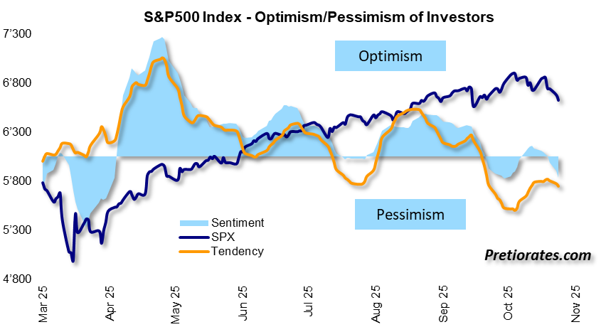 In fact, optimism has cooled noticeably over the past month. And let’s remember: corrections almost never occur during optimistic times – except in the rare case of black swan events. But the S&P 500 has now entered pessimistic territory…