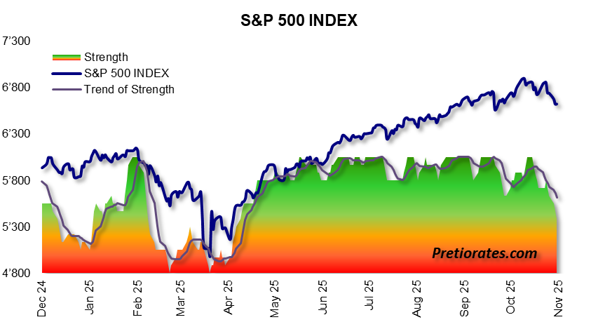 And the long-term strength index may also be heading for the yellow zone soon – a warning signal that the “green light” for investors on Wall Street is at least temporarily going out…