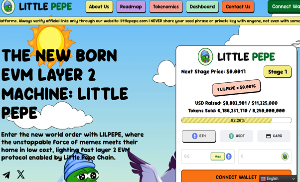 Among the hottest presale tokens right now is Little Pepe (LILPEPE). While it may carry the vibe of a meme coin, the numbers backing it up tell a serious story. Currently in Stage 7 of its presale, LILPEPE is priced at just $0.0016. Over $8.88 million has already been raised from its $11.2 million target, and more than 6.78 billion tokens have been sold. That’s over 82% of this stage already cleared, and it’s speeding toward its next stage price of $0.0017.